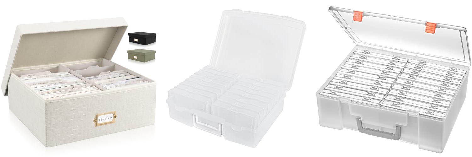 - Plastic: Some plastic boxes are available. Not all plastic is good for photos. Look for “archival-safe” or “photo-safe” plastic. Some plastics can release chemicals that harm photos.