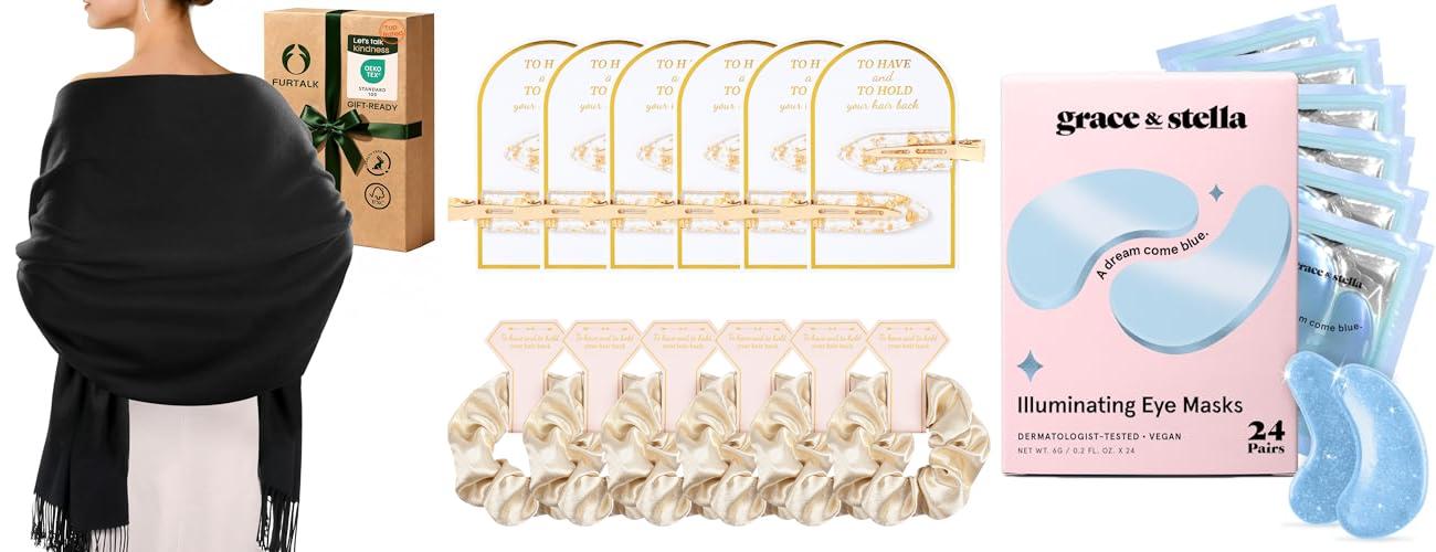 - **Getting Ready:** Items like matching robes, comfy pajamas, or personalized makeup bags are perfect for the morning of the wedding. They make for great photos too!
