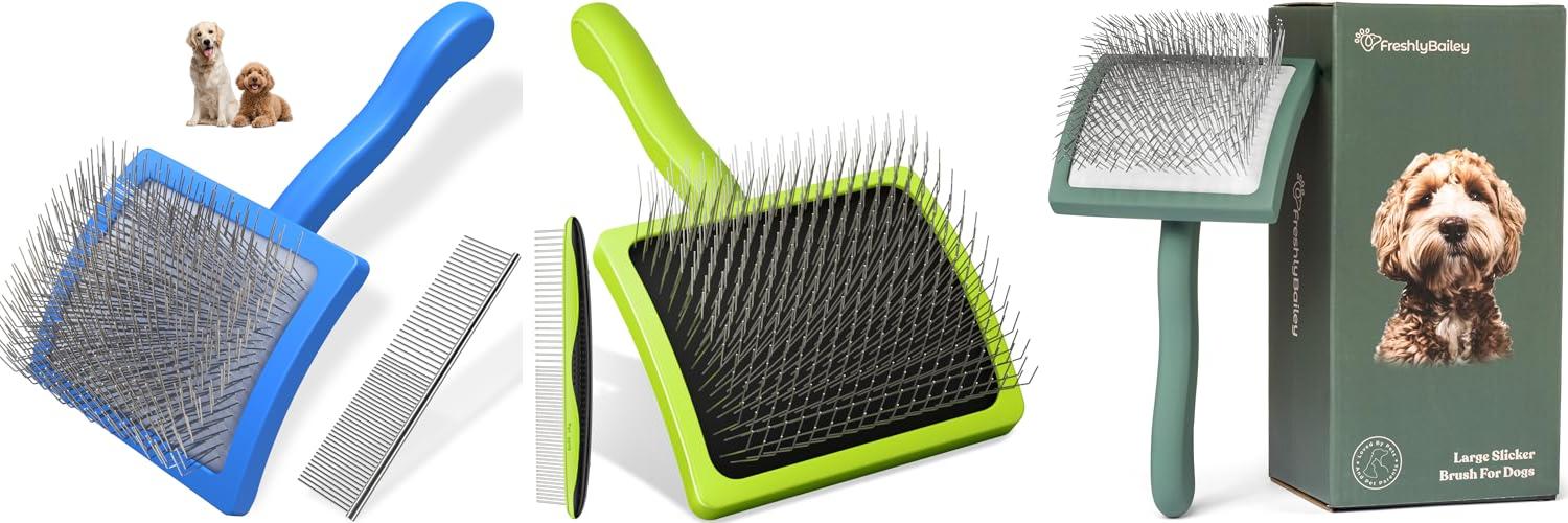 If you have a Goldendoodle, Poodle, or Labradoodle, you know how important it is to keep their curly or wavy fur looking its best. The Freshly Bailey Doodle Brush is designed specifically for these breeds. It helps to remove tangles and make their coats super fluffy. This brush is a must-have for any dog owner who wants to groom their pet like a pro right at home.