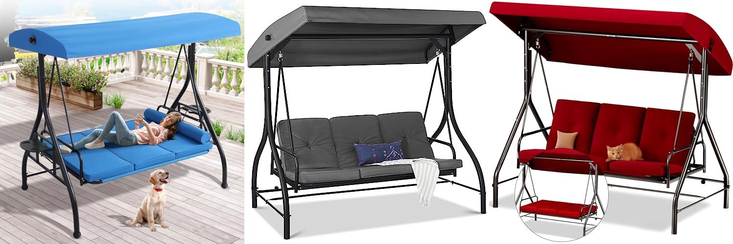 3. Porch Swing – 3-Seat Patio Outdoor Swing with Canopy for Adultes