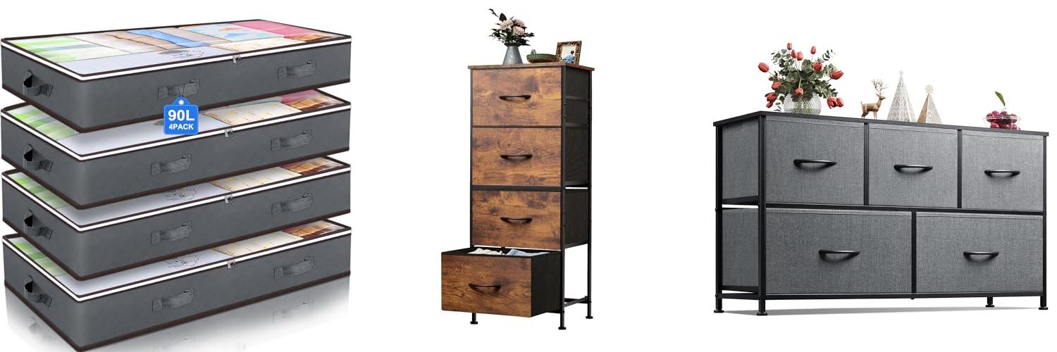 • The fabric drawers might not be as durable as solid wood drawers for very heavy items.