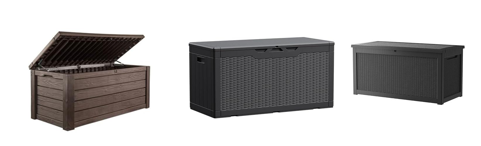 Most deck boxes are made from resin or plastic. These materials are usually waterproof and easy to clean. They are also often lighter than wood and resist rot and insects. Look for high-quality resin that is thick and feels strong.