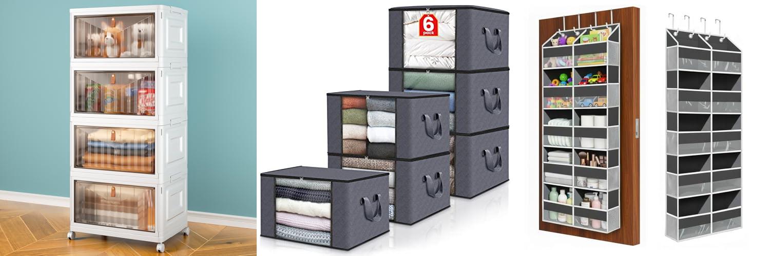 - Vertical Storage: Look for shelves, stackable bins, and hanging organizers. These use the height of your room, not just the floor.