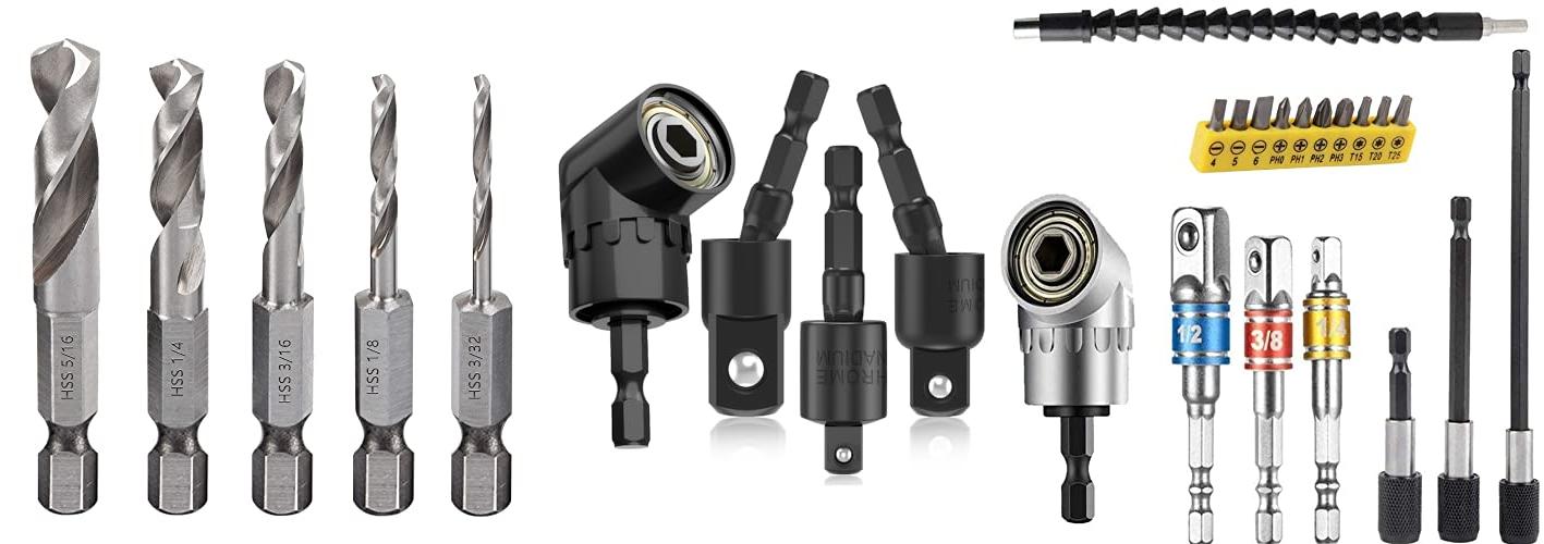 - 3-in-1 Set: You get a 105-degree right-angle drill attachment, a 1/4-inch hex shank extension, and a 11.6-inch flexible extension bar.