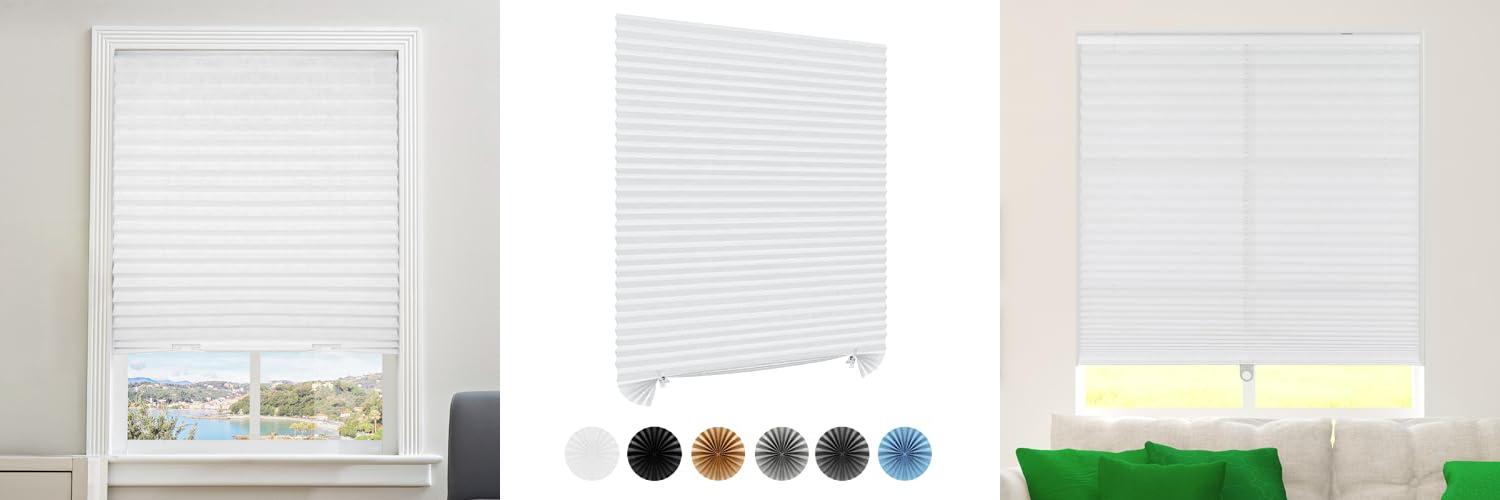 2. Window Blinds Cordless No Drill Cut to Size Clip On Stick On Self Adhesive Temporary Blinds Pleated Paper Blinds for Windows Doors Shades for Home Nursery Bedroom Kitchen Bathroom