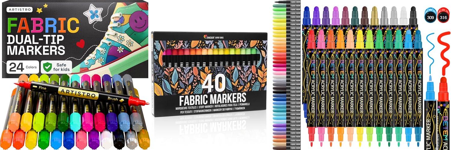 1. ARTISTRO 24 Dual-Tip Fabric Markers – Fabric Decorating Kit – Permanent for Clothes – Acrylic Paint Pens for Sneakers