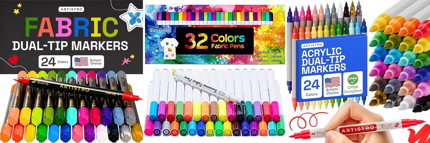 1. ARTISTRO 24 Dual-Tip Fabric Markers – Fabric Decorating Kit – Permanent for Clothes – Acrylic Paint Pens for Sneakers