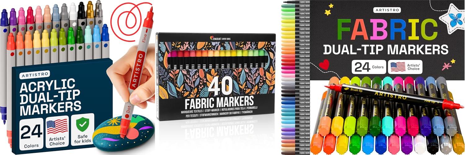 3. ARTISTRO 24 Dual-Tip Fabric Markers – Fabric Decorating Kit – Permanent for Clothes – No Bleed Pens for T-Shirts