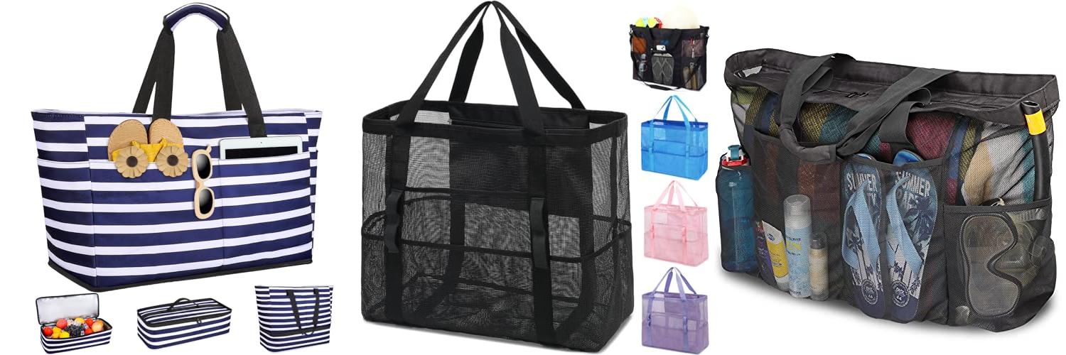 - Mesh: Some bags have mesh panels or are made entirely of mesh. This is great for letting sand fall out and for allowing wet items like swimsuits to air dry.