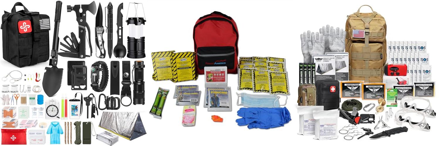 - The kit includes high-quality survival gear like a 3-in-1 flashlight with radio and charger, emergency shelter, and thermal blankets.