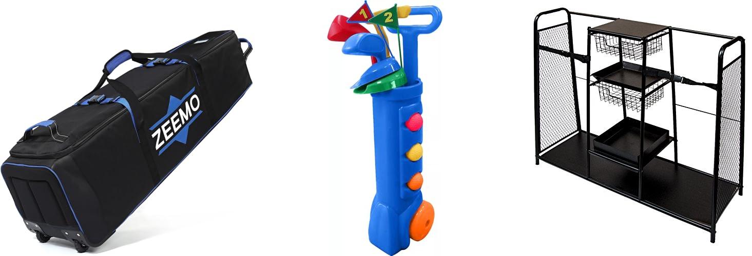 • The high-impact plastic golf bag is super cool. It has a handle and wheels, so your child can easily carry their gear around.