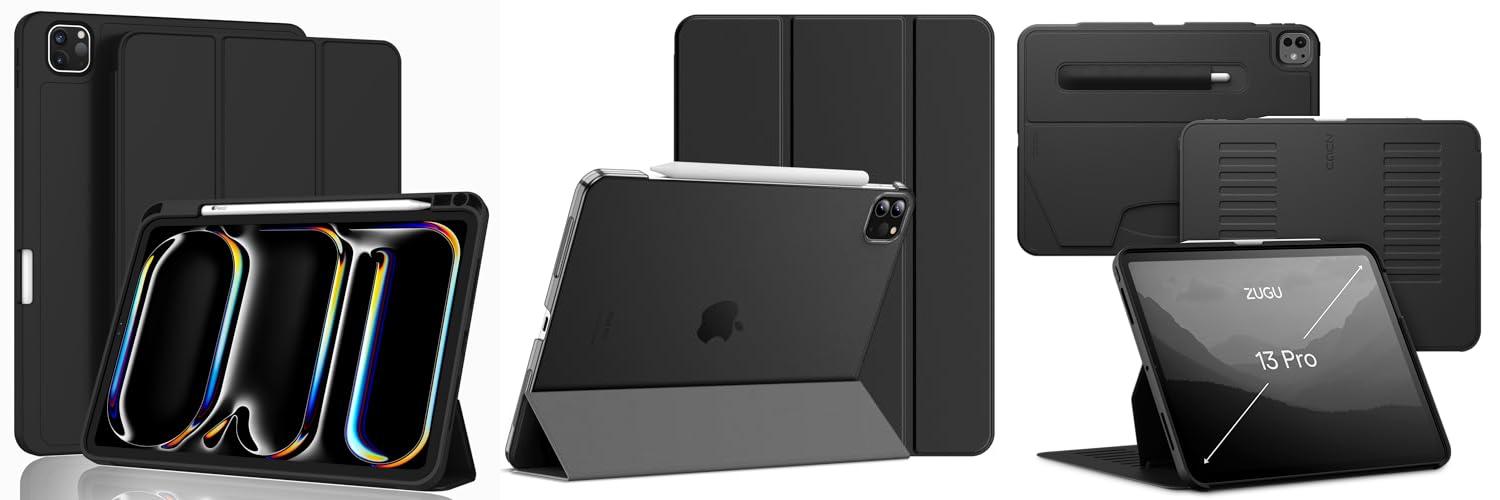 Zugu Case for iPad Pro 13 (M4/M5) 2024/2025, Slim Protective Cover with Apple Pencil Holder, Auto Wake/Sleep, Multiple Viewing Angles, iPad Pro 13 Inch Cover, Phone Protectors, Black