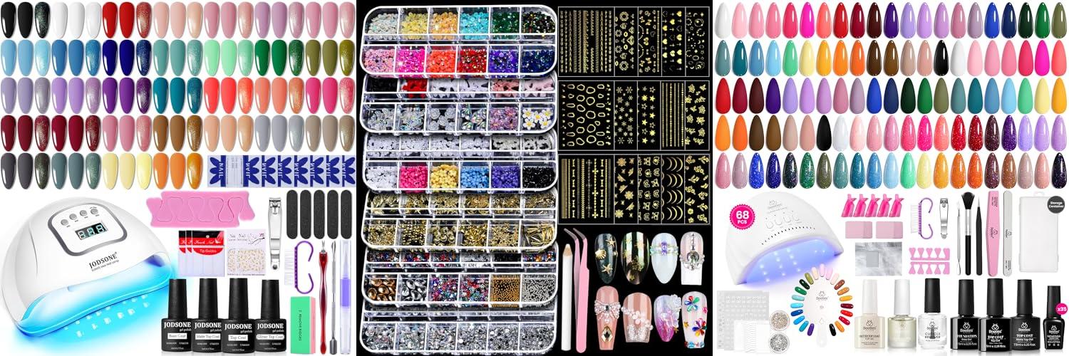 1. JODSONE Gel Nail Polish Kit with U V Light 32 Colors Gel Polish Nail + 4 Functional Adhesive Bottles Kit Soak Off Manicure Tools Gifts for Women