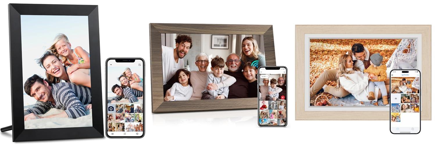 The Dragon Touch Digital Picture Frame WiFi 10 inch IPS Touch Screen Digital Photo Frame Display, 32GB Storage, Auto-Rotate, Share Photos via App, Email, Cloud, Classic 10 Brown helps you stay connected with your loved ones by letting you share photos and videos wirelessly. This frame is a wonderful way to keep family memories alive and share them easily.