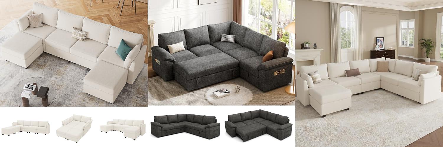 5. SUAWY 108 Inch Modular Sectional Sofa with Pull Out Bed