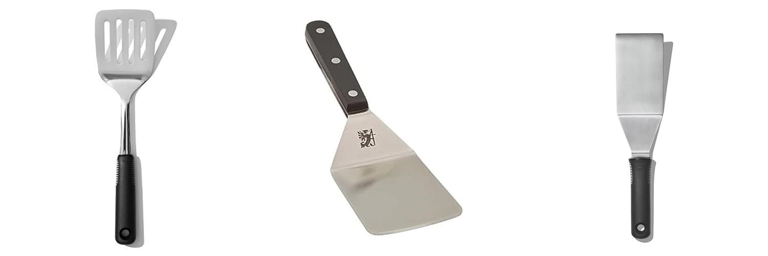 - These spatulas work great on cast iron pans, flat tops, and grills.