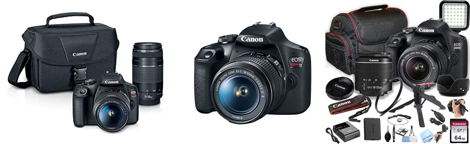 3. Canon EOS 2000D / Rebel T7 DSLR Camera w/EF-S 18-55mm F/3.5-5.6 Zoom Lens + 64GB Memory