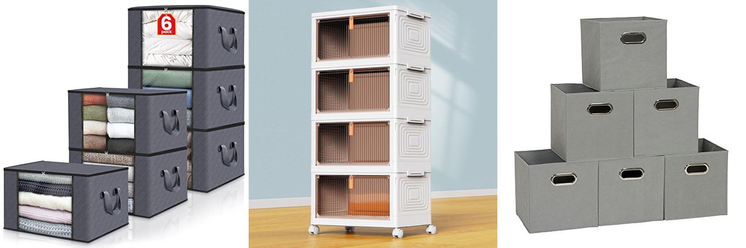 - Closet organizers: Cube-shaped bins or fabric drawers fit well in closets. They can hold folded clothes, accessories, or books.