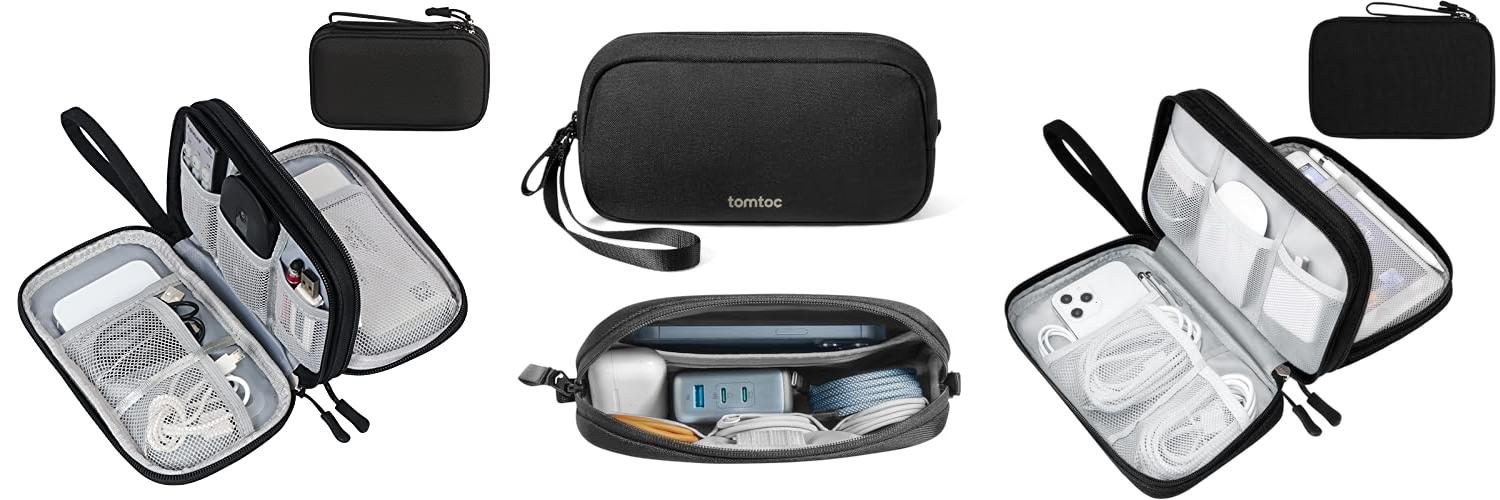 - The double-layer design gives you plenty of space for all your cables, chargers, and other small tech items.