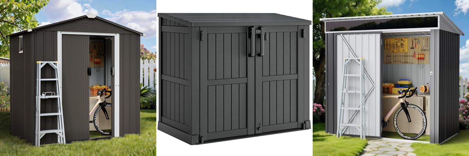 A: Plastic (resin) sheds are often the best because they don’t rot or rust and are low maintenance. Metal sheds are also a good, strong option if they are rust-proofed. Wood sheds look nice but require more upkeep to stay waterproof.